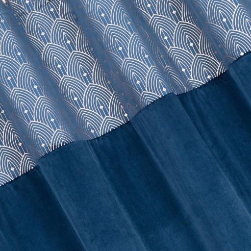 Zasłona welwetowa zdobiona kryzą z szampańskim nadrukiem szerokość: 140 cm, długość: 250 cm, kolor: granatowy, Gramatura: 200 GSM, Skład: 100% poliester