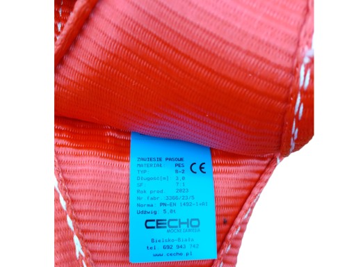 - znakowanie: udźwig, znak CE, nazwa producenta, numer seryjny, długość robocza zawiesia, data produkcji