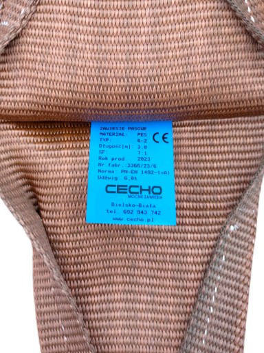 - znakowanie: udźwig, znak CE, nazwa producenta, numer seryjny, długość robocza zawiesia, data produkcji