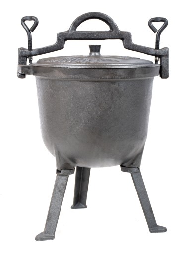 Kociołek może stać bezpośrednio w ognisku lub być zawieszony nad ogniskiem.