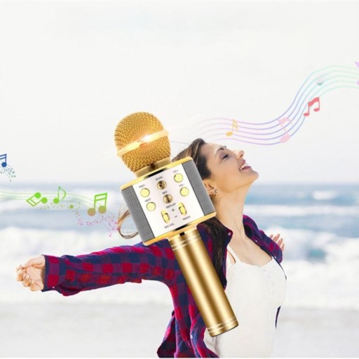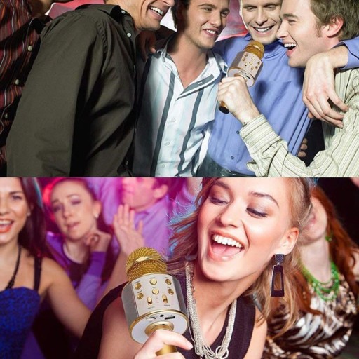 Łącze Bluetooth pozwala na sparowanie mikrofonu ze smartfonem, tabletem lub telewizorem SMART TV, które obsługują system Android lub IOS. Po połączeniu dźwięk będzie odtwarzany w głośnikach mikrofonu. W urządzeniu zewnętrznym należy uruchomić aplikację karaoke, włączyć muzykę lub filmik na You Tube, ewentualnie uruchomić zapisane dźwięki na karcie SD, aby wyświetlił się tekst utworu, po wykonaniu tych czynności można przejść do zabawy. Możemy również podłączyć mikrofon bezpośrednio do urządzenia za pomocą kabla USB.