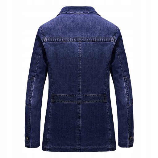 Męska marynarka dżinsowa Slim Fit Casual Business 3 guziki garnitur kurtka z wieloma kieszeniami