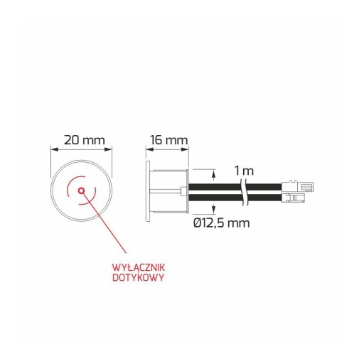 Wyłącznik, zasilany napięciem stałym 12V DC lub 24V DC, zamknięty jest w obudowie izolacyjnej z tworzywa sztucznego w kolorze chrom. Służy do włączania i wyłączania oraz ściemniania i rozjaśniania źródła światła LED przy użyciu zasilacza. Wyłącznik sensorowy (dotykowy) działa poprzez dotknięcie sensora, który powoduje włączenie lub wyłączenie oświetlenia.