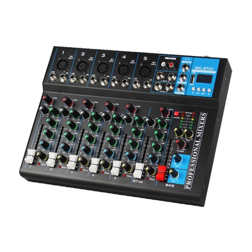 Wielofunkcyjny: Mikser jest wyposażony w źródło sygnału wyjściowego i źródła dźwięku basowego, wejście stereo, stabilną jakość, niski poziom zniekształceń, obsługujący efekty dźwiękowe i wokalu w efekcie końcowym; Wbudowany zasilacz 48V, podświetlany wyświetlacz LCD, port obsługujący zestaw urządzenia, może być bezpośrednio połączony z sygnałami monitorującymi w monitorowaniu poziomu sygnału kanału w czasie rzeczywistym