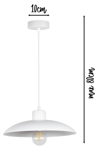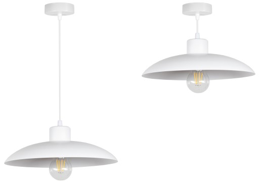 Przedmiotem oferty jest nowoczesna i designerska biała lampa sufitowa wisząca z metalowym kloszem.