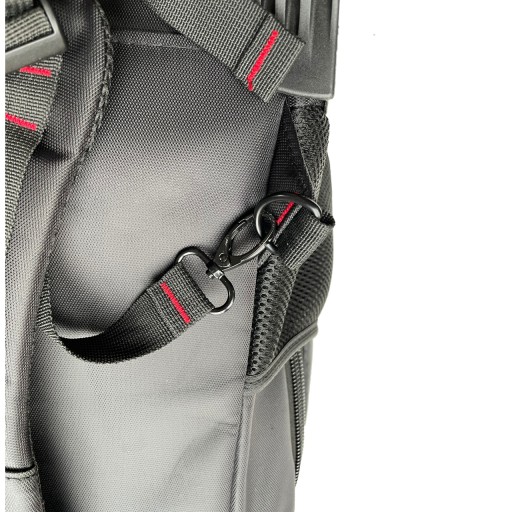 - 4 gumowe kółka ciche, łożyskowane odpinane kółka, zastosowanie 4 kółek ułatwia prowadzenie plecaka na lotniskach.