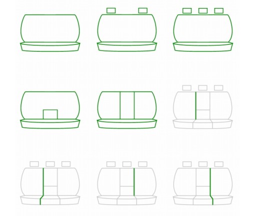 - Pokrowce na tylnej kanapie (oparcie i siedzisko) wyposażone są w zamki błyskawiczne dzięki czemu pasują do większości foteli dzielonych (prawo i lewostronnie) oraz kanap niedzielonych.