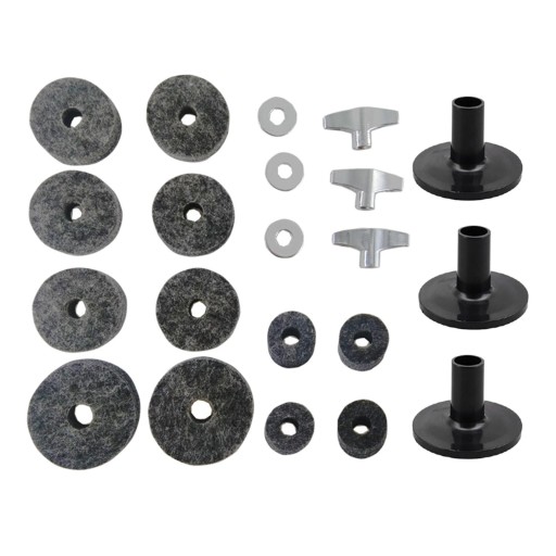 PASUJE: Standardowe podkładki filcowe, tuleje, nakrętki, pasują do większości zestawów perkusyjnych
