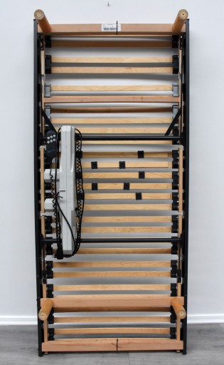 Stelaż, pochodzenie Niemcy, wykonany ze stabilnym raszek, dostosowujących się do obciążenia, w zestawie pilot regulujący różne wysokość, podnoszenie osobno część głowy, osobno część nóg, 100% sprawny, posiada długi kabel około 3 metrów