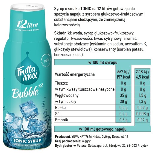 Syrop FruttaMax o smaku TONIC 500 ml NOWOŚĆ !