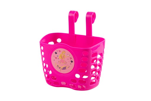 Koszyk rowerowy plastikowy różowy z księżniczką z uchwytami w