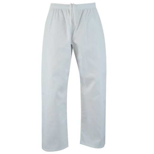 W spodniach kimona połączono tradycyjne wiązanie z dodatkową gumką ściągająca co w przypadku dzieci znacznie poprawia użytkowanie stroju zapobiegając zsuwaniu się spodni podczas treningu.