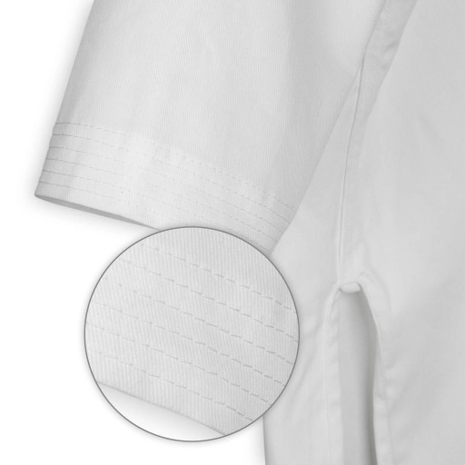 Wszystkie narażone na rozdarcie elementy kimona zostały zabezpieczone dodatkową wzmacniającą wszywką w celu zapewnienia odporności na uszkodzenia podczas wykonywania ćwiczeń.