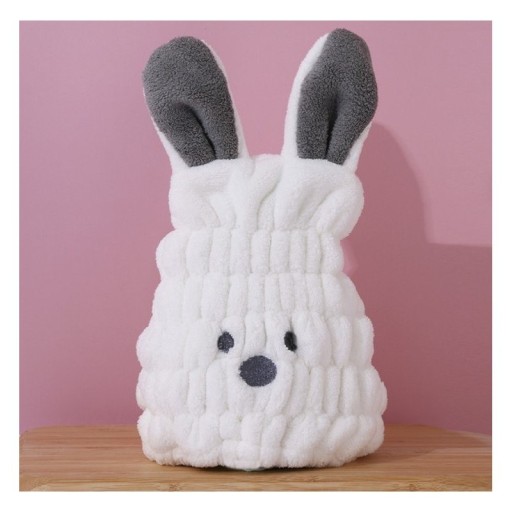 Ręcznik, turban do suszenia włosów - biały króliczek Kompaktowy i świetnie wchłaniający ręcznik do włosówPochłania 20% więcej wody, niż zwykły ręcznik.