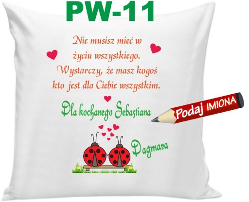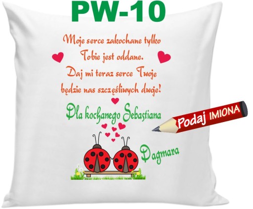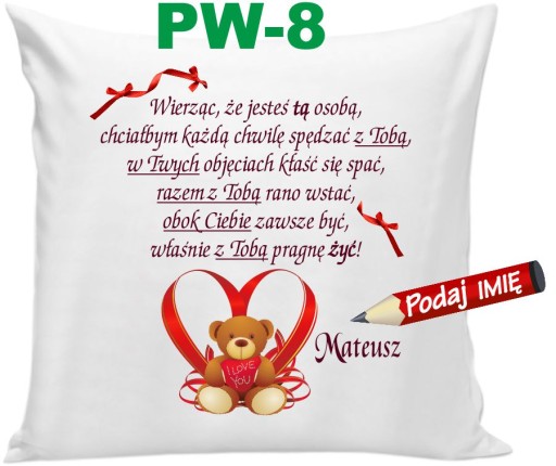Oferujemy wzruszającą a zarazem praktyczną poduszkę, która codziennie będzie przypominała Twojemu Ukochanemu (Ukochanej) o uczuciu jakim go darzysz. Poduszka z Imieniem z życzeniami, dedykacją.
