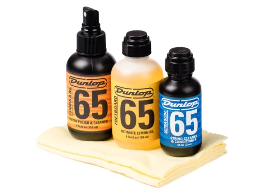Komplet wysokiej klasy środków renomowanej firmy DUNLOP do czyszczenia i konserwacji gitar.