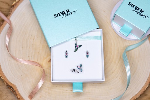 Każde zamówienie domyślnie traktujemy jako zamówienie dla jednej osoby, pakujemy więc biżuterię w pudełkach kompletami i zestawami. W każdym pudełku znajdziesz też metkę jubilerską z wagą, ceną i próbą.