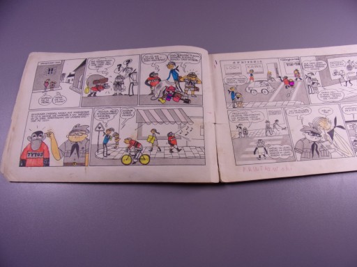 Stan komiksu - okładka luźna, uszkodzona pierwsza i druga karta, kilka ilustracji pokolorowanych - tyle z minusów. Z plusów - czysty, kompletny, bez obcych zapachów, bez taśmy klejącej i bez śladów po niej.