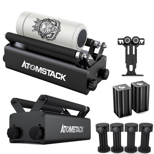 Laserowy wałek obrotowy ATOMSTACK R3 Pro, pomocniczy moduł do grawerowania do grawera laserowego, wał obrotowy 360° w osi Y do rzeźbienia czara/cylindrycznych/okrągłych/nadwymiarowych