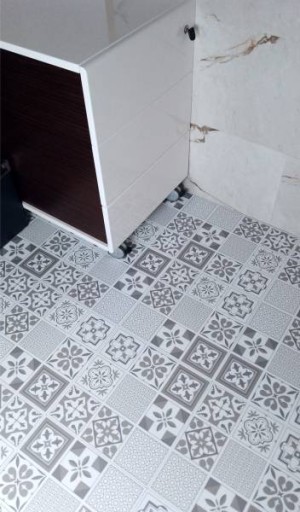 Jeśli podłoga jest gotowa do klejenia - należy rozłożyć "na sucho" kilka płytek/paneli a następnie zrywając papier ochronny kleić na podłodze jedną po drugiej (na styk) nie zostawiając odstępów - lekko dociskając i docinając nożykiem w razie potrzeby. Po ułożeniu całości przetrzeć delikatnie powierzchnię nawilżoną szmatką. Z pierwszym gruntownym czyszczeniem odczekaj 3-5 dni po montażu.