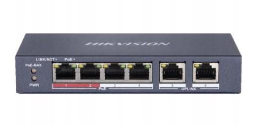 - Switch PoE 4+2 do połączenia i zasilenia kamer - DS-3E0106P-E/M