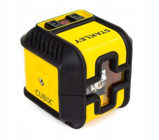 - Poziomica laserowa Stanley Cubix TM emituje samopoziomującą krzyżową wiązkę lasera (linie poziome i pionowe) na ścianie, w odległości do 8 metrów.