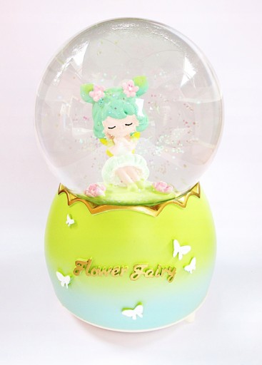 Piękna szklana kula śnieżna z pozytywką ze śliczną dziewczynką z kwiatuszkami we włosach.