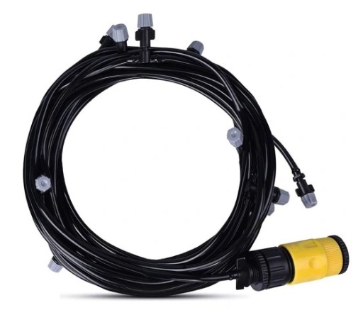 Wystarczy podłączyć kabel z wodą i system nawadniania automatycznie uruchomi się i rozpocznie zraszanie. Nie zużywa energii elektrycznej.