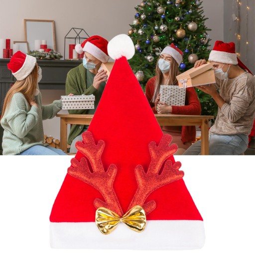 Czapka bożonarodzeniowa: kreatywny design, z porożem i złotą kokardką, nowość i piękna.
