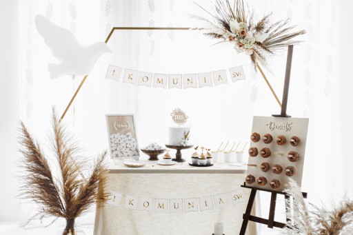 ✅Symboliczne Akcenty: Bieżnik może być używany do dodania symbolicznych akcentów związanych z pierwszą komunią, takich jak motywy religijne, krzyże, hostie czy symbole kościelne, co dodaje głęboką wartość znaczeniową do dekoracji.
