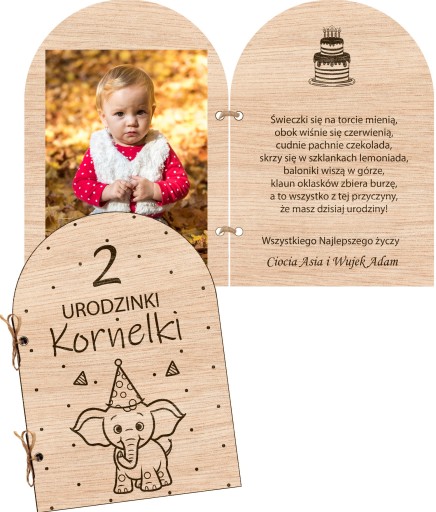 DREWNIANA KARTKA URODZINOWA + ELEGANCKA KOPERTA