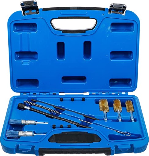 Zawartość zestawu: 3 szczotki z drutu stalowego, powłoka z mosiądzu, do usuwania pozostałości spalania z otworów na obudowę wtryskiwacza | 2 szczotki silikonowo-nylonowe, do