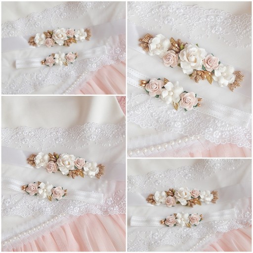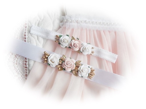 Крещенский комплект ROSE, ПОВЯЗКА НА ГОЛОВЬ и РЕМЕНЬ для платья