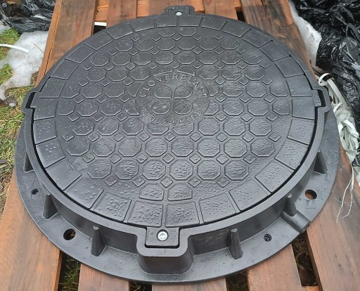 Właz wyprodukowany został z kompozycji polimerowej i ma polepszone właściwości przeciwko poślizgowi i ścieraniu. Pokrywa wytrzyma obciążenie do 12,5 ton. Produkt jest odporny na nagłe zmiany temperatury. Łatwy montaż lub wymiana włazu. Zestaw zawiera kopertę i pokrywę włazu.