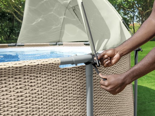 Jednym z nich jest poręczny daszek, który zapewni basenowi i użytkownikom skrawek cienia oraz naturalną osłonę przed promieniami UV.