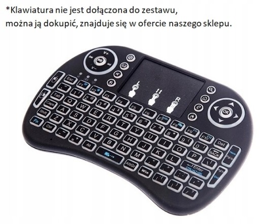 Do urządzenia można dokupić bezprzewodową klawiaturę która znacząco ułatwi poruszanie się po menu urządzenia jak i w różnego rodzaju aplikacjach. Klawiatura dostępna na innych naszych aukcjach.