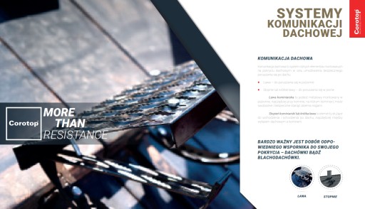 Corotop SET Ława kominiarska 80 cm ze wspornikami typu karpiówka - składa się z: podestu, dwóch wsporników pod konkretne pokrycie dachu, dwóch mocowników oraz kompletu śrub montażowych. Dzięki niej można w bezpieczny i wygodny sposób przemieszczać się po nachylonej połaci dachowej. Świetnie ułatwi dostęp do urządzeń kominowych czy anten. Antypoślizgowe przetłoczenia oraz specjalne wcięcie, pełniące rolę uchwytu, ułatwiają poruszanie się między poziomami. Dodatkowo blacha została zabezpieczona powłoką cynkową oraz jest pokryta farbą proszkową.