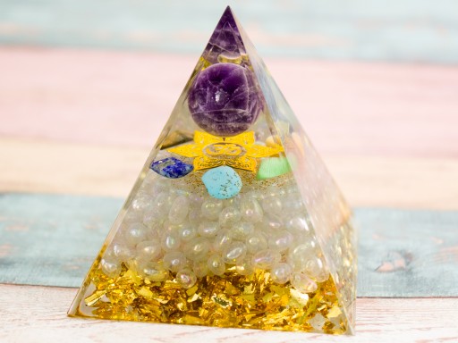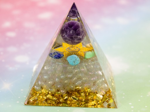 Ta piramidka zapewnia korzystne oddziaływanie na każdą z siedmiu czakr, a dzięki kamieniom, minerałom, które nie tylko wyglądają pięknie, ale także posiadają własną moc, energię i uzdrowienie, wzmagają cenne oddziaływanie oczyszczania i odblokowania czakr przynosząc dobro, szczęście, zdrowie.