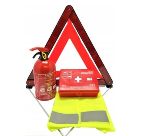 ZESTAW GAŚNICA APTECZKA TRÓJKĄT KAMIZELKA DO AUTA