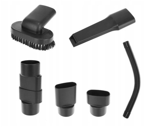 Do zestawu dołączono komplet końcówek tj: szczotka, nakładka szczelinowa wąska oraz szeroka i elastyczna rura.