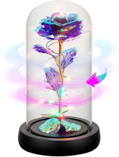 Niezwykle urokliwy kwiat umieszczony pod szklaną kopułą, oświetlony delikatnym blaskiem diod LED, jest zamknięty pod kloszem. Róża prezentuje się niezwykle realistycznie, do złudzenia przypominając prawdziwy kwiat. Efekt wizualny - połączenie szklanej kopuły, subtelnej iluminacji i pięknego kwiatu, sprawia wrażenie, jakby pochodził prosto z bajki.