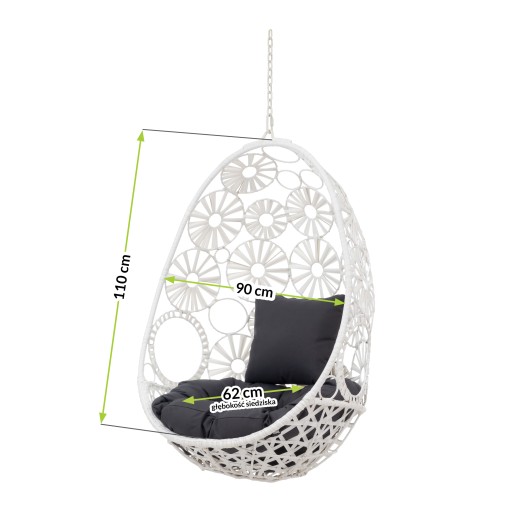 Fotel wiszący do pokoju ma głębokie siedzisko, co znacznie wpływa na komfort siedzenia. Atutem fotela kokonu jest miękka poduszka na siedzisko oraz poduszka pod głowę.