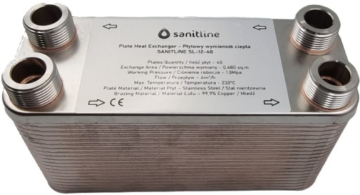 Powierzchnia płyt w wymienniku płytowym lutowanym jest najważniejszym parametrem doboru i ona de facto mówi jak wydajny jest to model w zestawieniu z innymi. Jeśli szukasz wymiennika do pieca gazowego lub innego rodzaju kotła grzewczego - to model 40-płytowy SL-12-40 jest odpowiedni pod warunkiem, że są to urządzenia o mocy około 16-24kW. W przypadku doboru do kominka lub innego bardziej bezwładnego urządzenia opartego na płaszczu wodnym i pracującego w układzie otwartym - SL-12-40 obsłuży bezpiecznie urządzenie o mocy 16-22 kW.