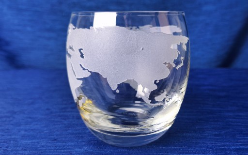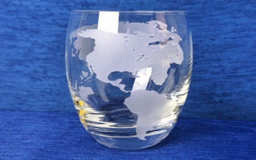 Staranne zdobienie - motyw Globus, zostało wykonane na szkle produkcji Krosno Glass S.A. Piaskowanie, pozwala w połączeniu z kolorem trunku wydobyć piękno szkła, dzięki czemu idealnie nadaje się na prezent nie tylko dla podróżnika.
