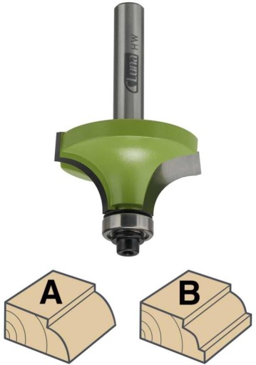 Frez może pracować z mniejszym łożyskiem dla uzyskania profilu B, patrz tabela z łożyskami alternatywnymi.