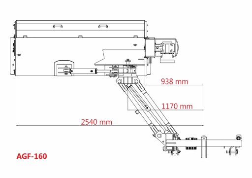 Model AGF-160 ma szerokość koszenia 155 cm i jest napędzany wałkiem WOM wchodzącym w zakres dostawy. Kosiarka może być przesuwana w lewo i w prawo oraz pochylana (w górę o 90° i w dół o 55°). Do obsługi tych funkcji potrzebne są 2 obwody sterowania hydraulicznego w ciągniku, ponieważ kosiarka jest wyposażona w 2 siłowniki hydrauliczne dwustronnego działania.