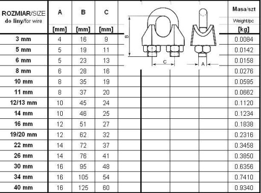 Zastosowanie : do łączenia , przytrzymywania i zaciskania pętli na linie .