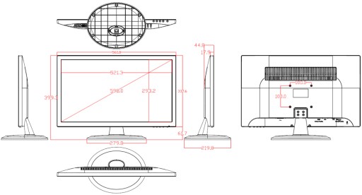- Wymiary monitora 561 x 339 x 218 mm (SxWxG)