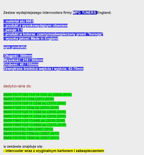 Интеркулер Performance черный для BMW F10/F11 518-535d 143-313KM
