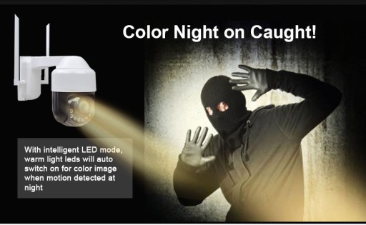 Monitoring w nocy jest skuteczny dzięki wbudowanym mocnym diodom IR na podczerwień lub kolorowemu obrazowi Nocą!
